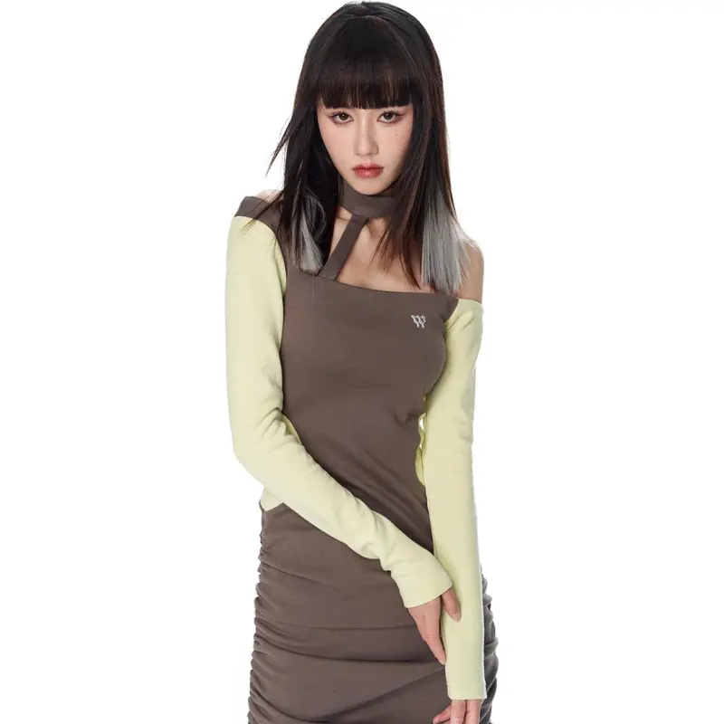 NAWS 말차 무스 여성 긴팔 원피스 - POIZON