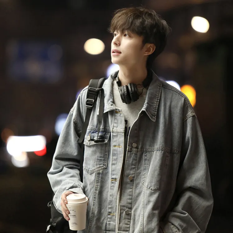 색상:그레이-시티보이 트렌디 브랜드 데님