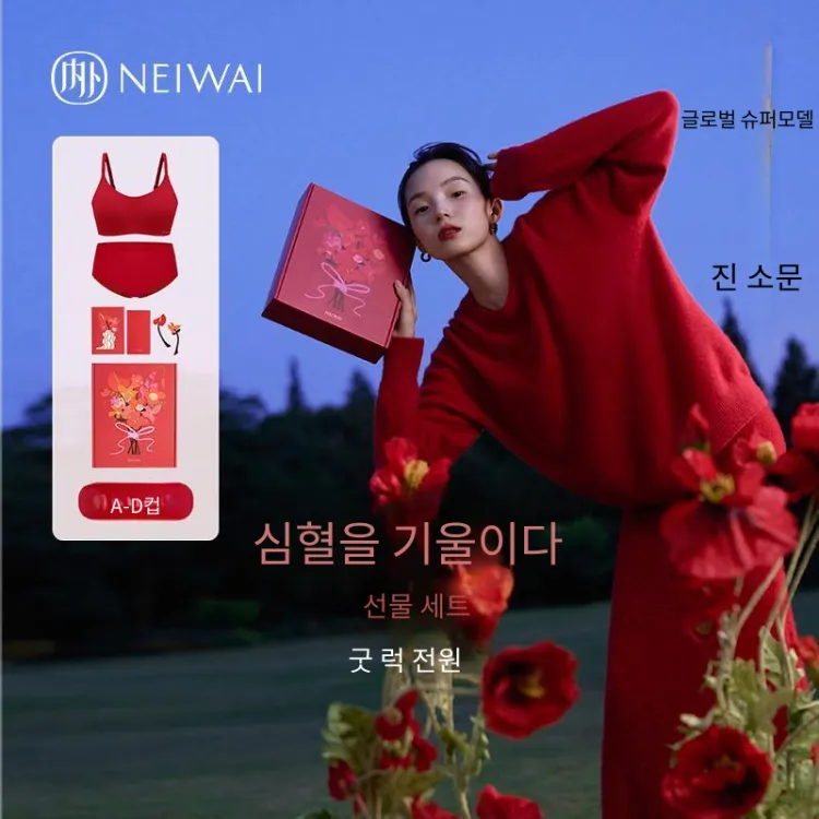 NEIWAI 캐미솔 스타일 레드 여성 언더웨어 선물 세트 - POIZON