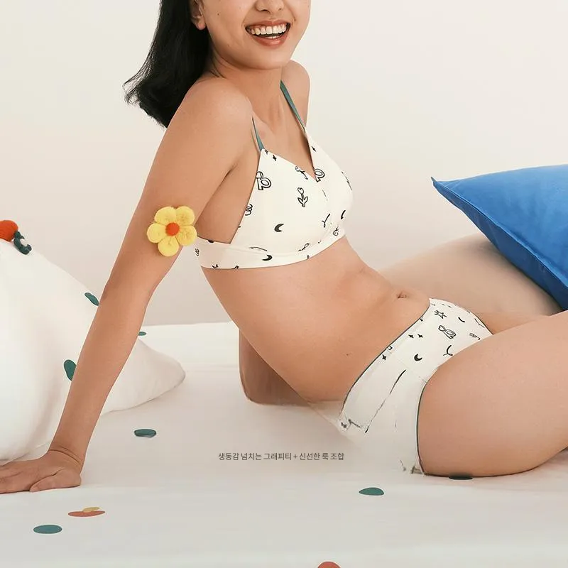 색상:화이트 베이스 손그림 도티드 (싱글 팩 브라)