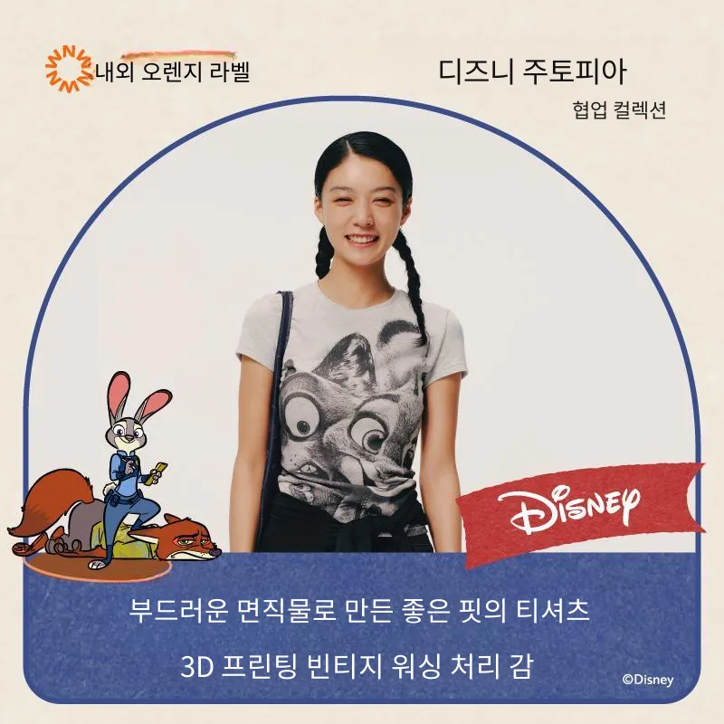 NEIWAI x 디즈니 티셔츠 여성 Undomesticated 멜란지 그레이