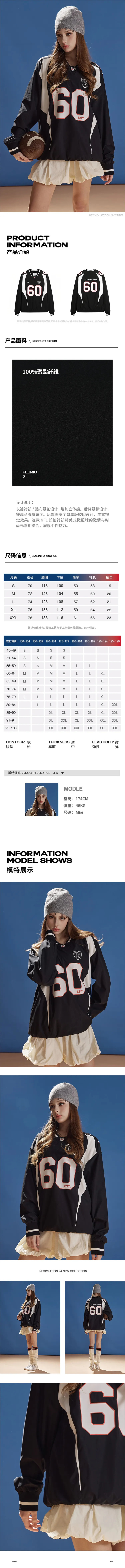 NFL 블랙 남녀공용 맨투맨 - POIZON