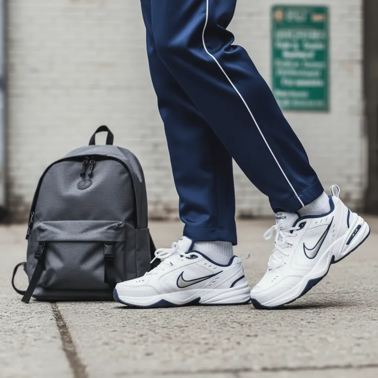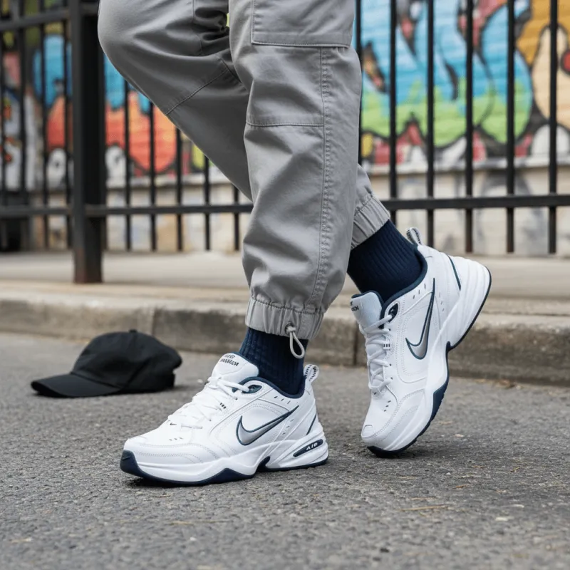 나이키 에어 군주 4 화이트 네이비 미끄럼방지 로우탑 청키 스니커즈 남성 블루 화이트
