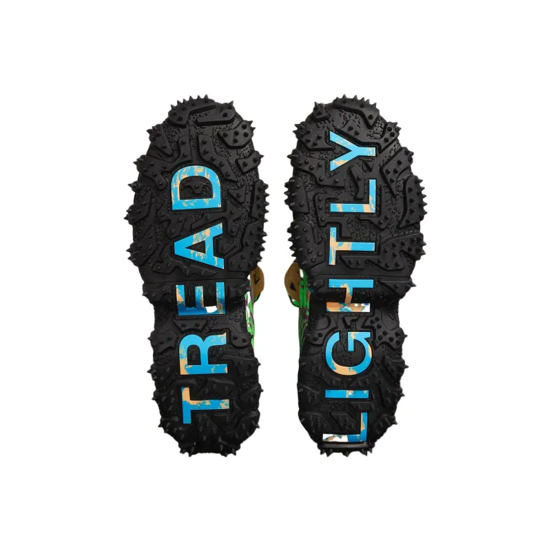 이 신발은 배색이 뛰어나고 디자인이 다소 과감해서 시선을 끌기에 충분해요. 전체적으로 초록색이 포인트가 되고, 신발 설포도 확실히 눈에 띄는 요소예요. 신발 갑피는 소재와 스웨이드의 조합으로 만들어졌고, 밑창과 뒷꿈치 부분이 부드러워요. 뒷꿈치에는 에어 쿠션이 들어가 있어서 아웃도어 활동 시에도 딱딱하지 않아요. 발등 부분에는 방수를 위한 지퍼가 있어요. 전체적인 디자인이 매우 독특하고 멋져요. 배색과 착용감이 정말 훌륭하고, 옷과도 잘 어울려요. 실물이 정말 멋있어서 강력 추천해요!