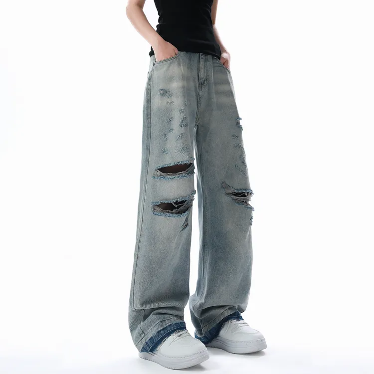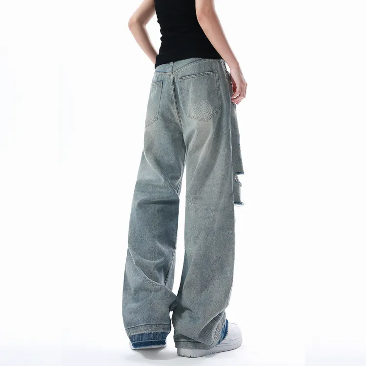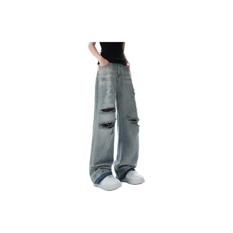 NOCAO 라이트 블루 남녀공용 청바지 - POIZON