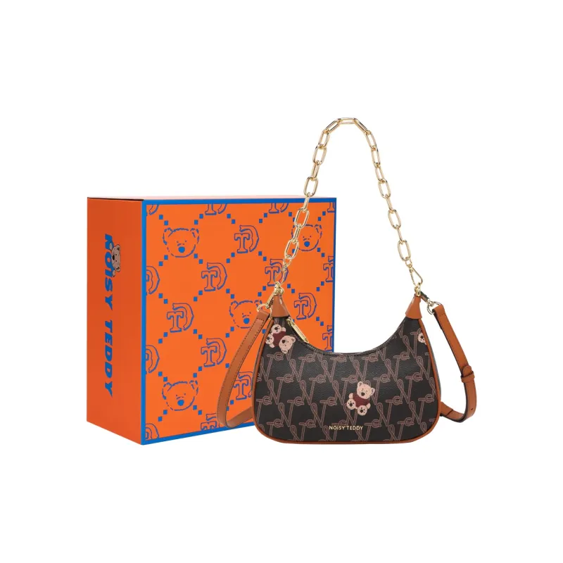 NOISY TEDDY PU 크레센트 백, 숄더 백 레귤러 여성 브라운/베이지 - POIZON