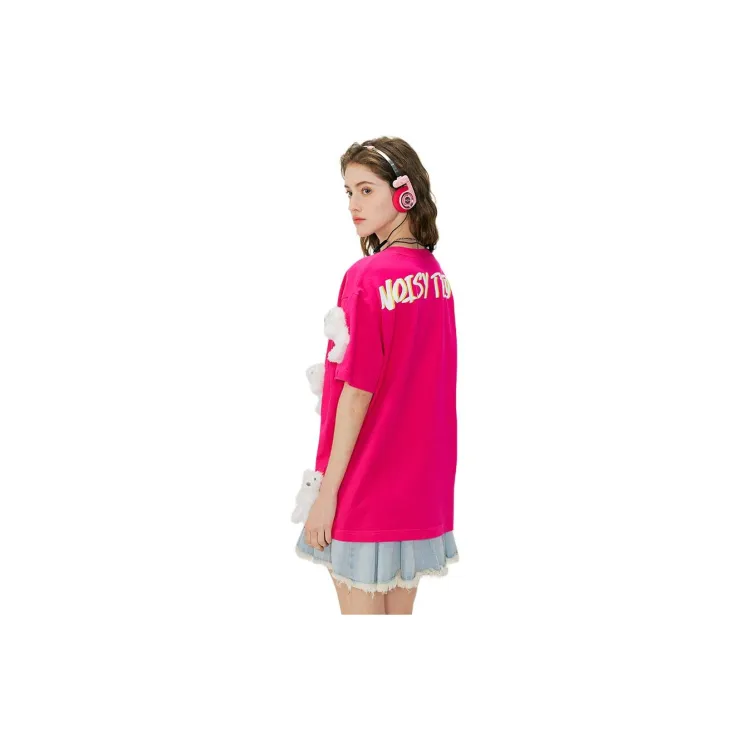 NOISY TEDDY 로즈 레드 남녀공용 티셔츠