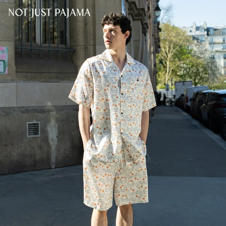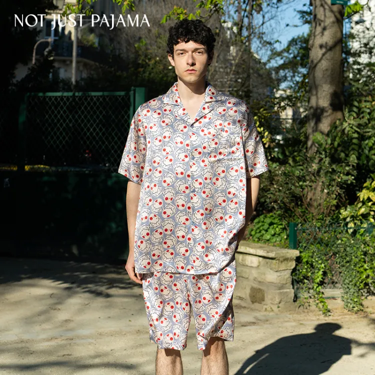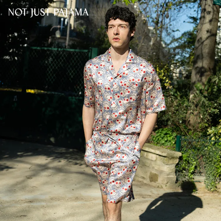 NOT JUST PAJAMA 실크 반팔 파자마 남성 의류 세트 남성 - POIZON