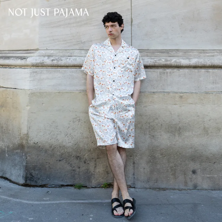 NOT JUST PAJAMA 실크 반팔 파자마 남성 의류 세트 남성