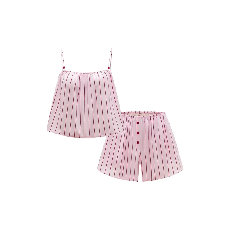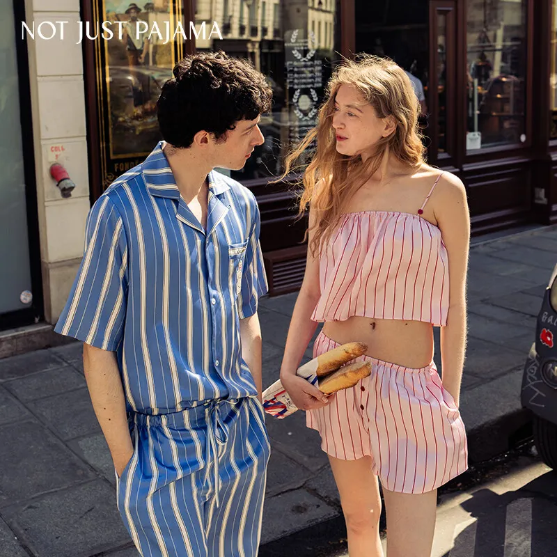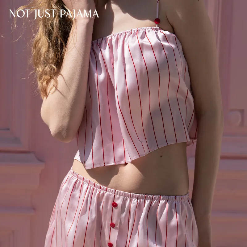 NOT JUST PAJAMA 핑크 스트라이프 패턴 여성 파자마 세트 - POIZON
