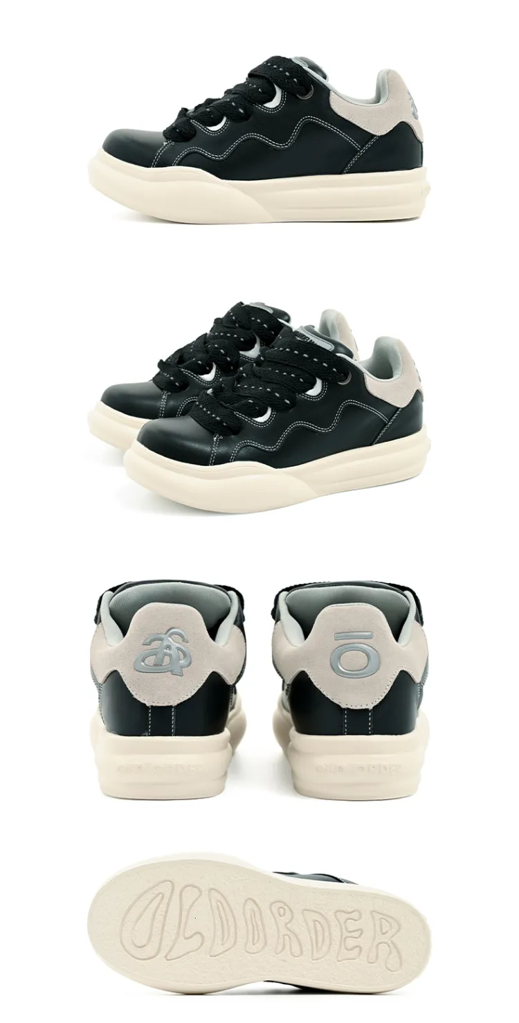 앤 아델만 x OLD ORDER 웨이브003 로우탑 스케이트보드 신발 남녀공용 블랙