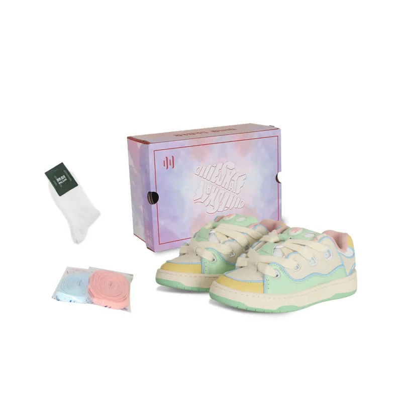 Ollieskate 로우탑 스케이트보드 신발 남녀공용 베이지 그린 옐로우 - POIZON