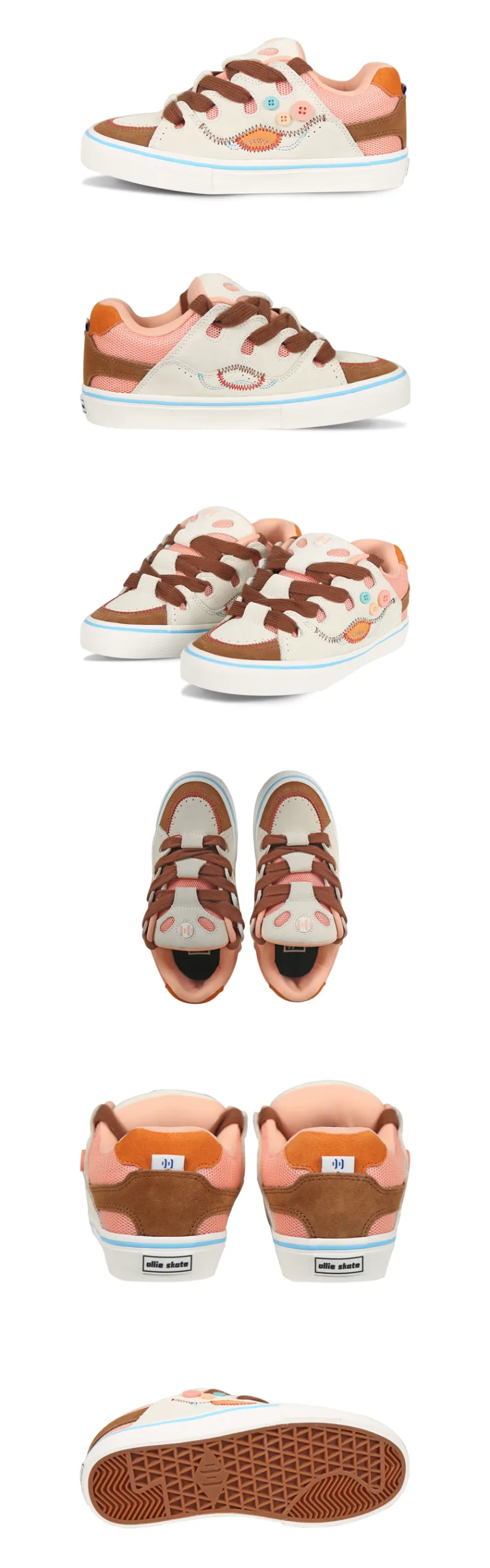Ollieskate 퍼피 신발 미끄럼 방지+내마모성 로우탑 스케이트보드 신발 남녀공용 베이지 핑크 브라운