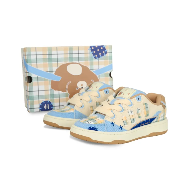 Ollieskate 퍼피 신발 캠퍼스 스타일 곰돌이 쿠키 색상 스무스 미끄럼 방지+내마모성 스케이트보드 신발 남녀공용 베이지 블루 브라운