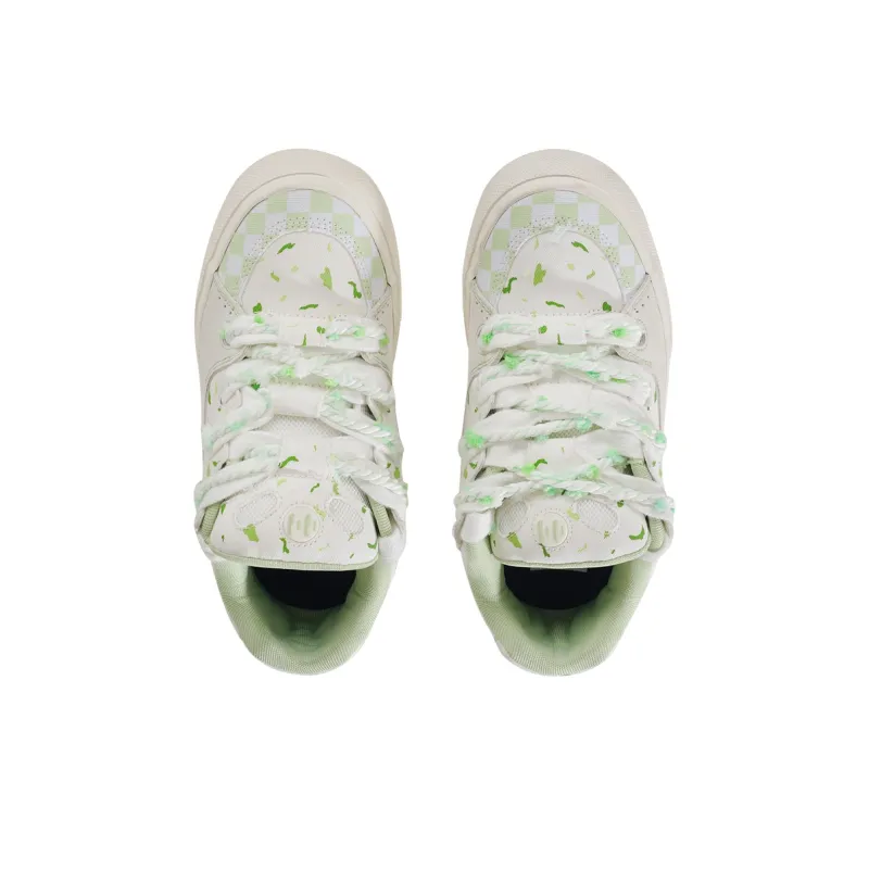 Ollieskate 내마모성과 가벼운 디자인 로우탑 스케이트보드 신발 남녀공용 화이트 그린