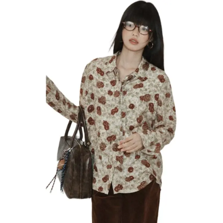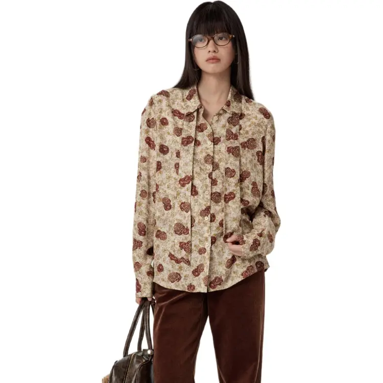Omont 베이지+프린트 여성 셔츠 - POIZON