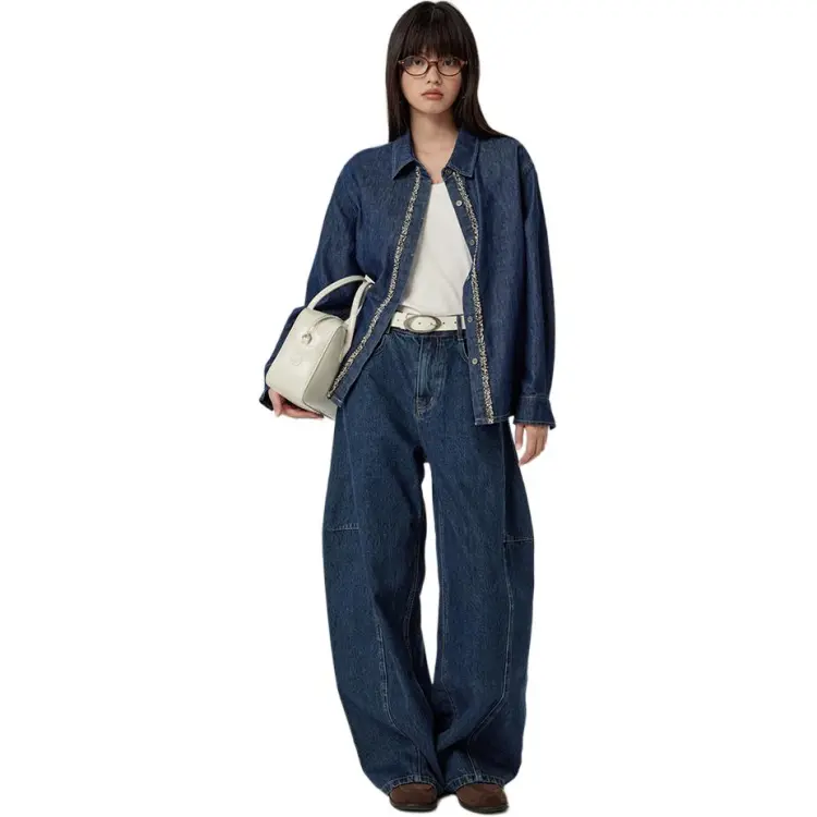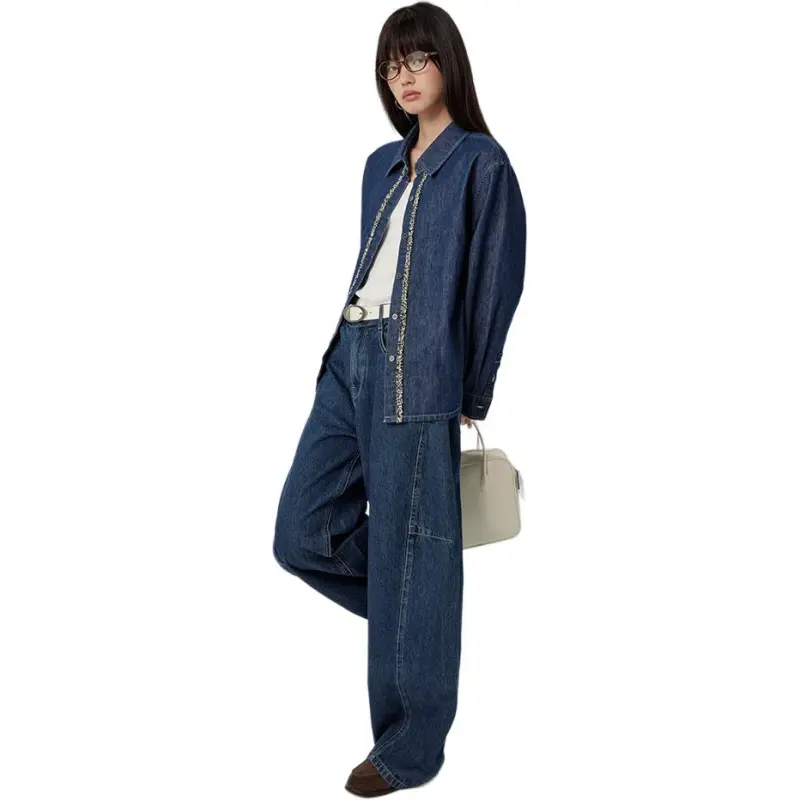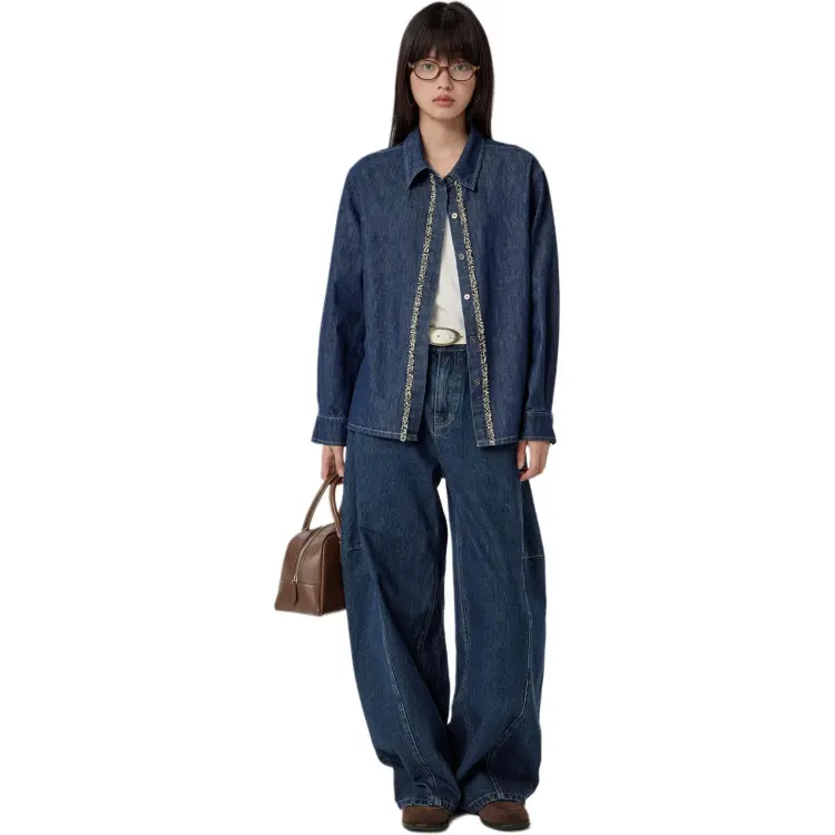 Omont 빈티지 데님 다크 블루 여성 셔츠 - POIZON