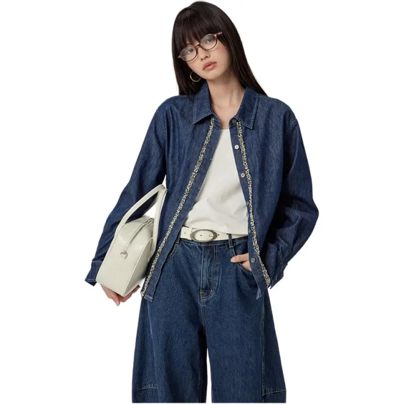 Omont 빈티지 데님 다크 블루 여성 셔츠