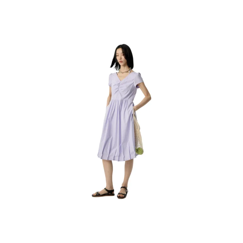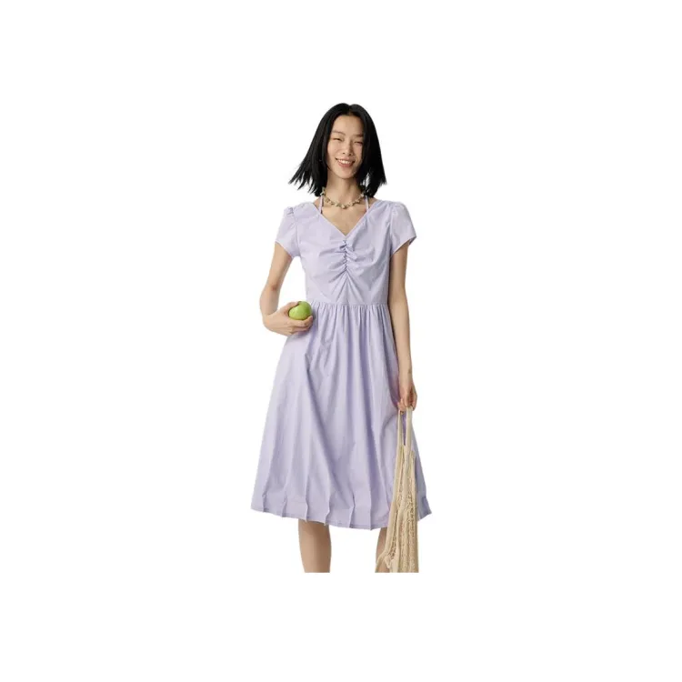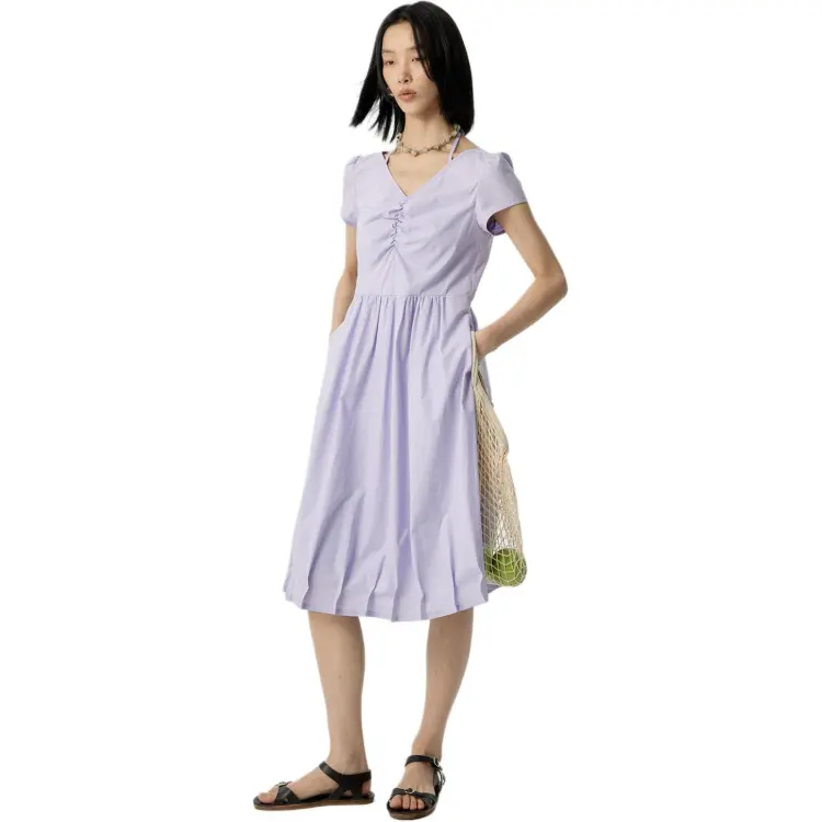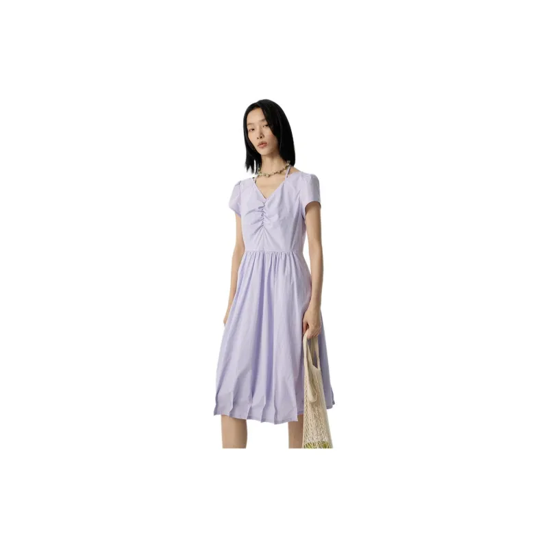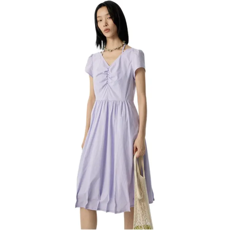 Omont 스모키 퍼플 여성 반팔 원피스 - POIZON