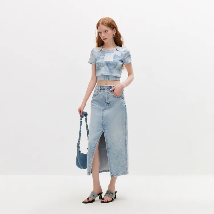 ONLY 여성 데님 롱 스커트 - POIZON