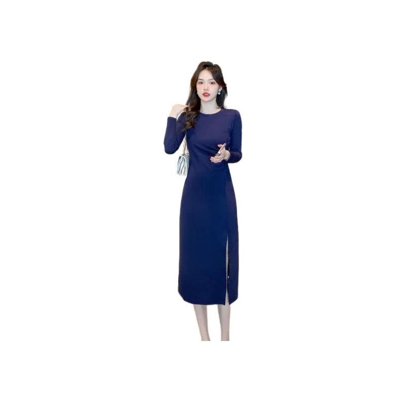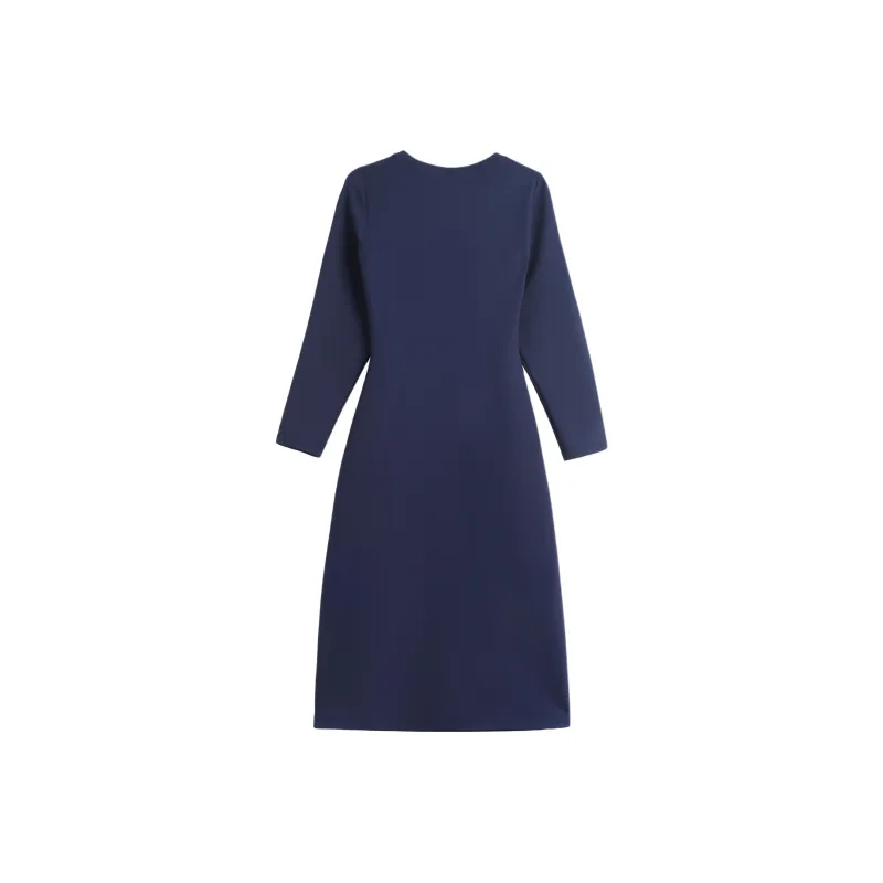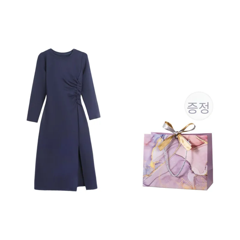 ONNFB 네이비 블루 리본 선물 포장 여성 긴팔 원피스 - POIZON