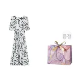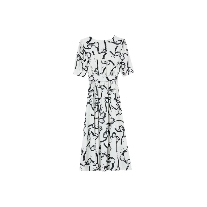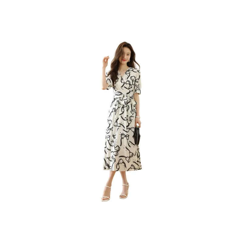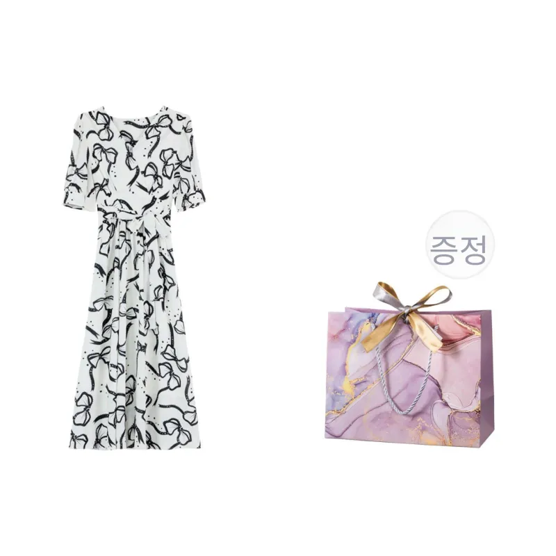 ONNFB 베이지 애프리콧 리본 선물 포장 여성 반팔 원피스 - POIZON