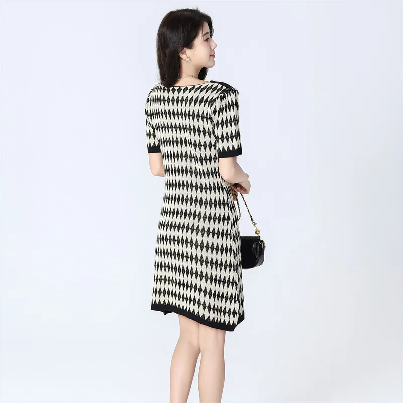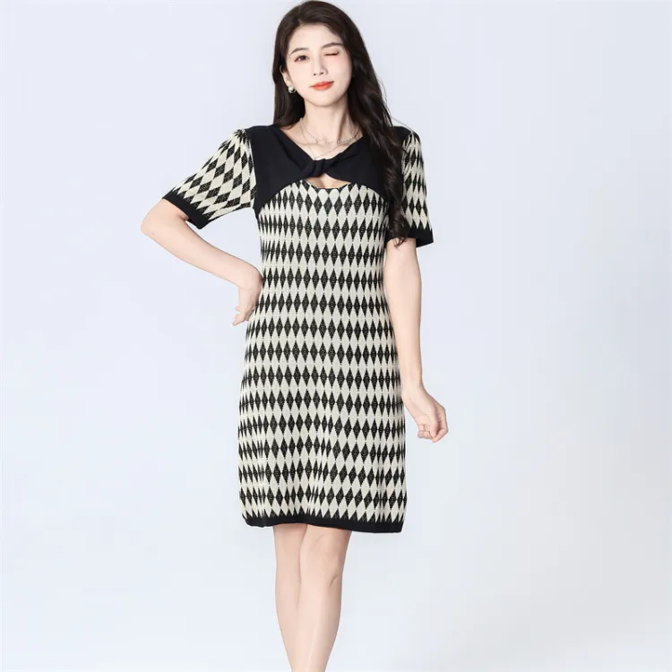 ONNFB 체크무늬 여성 반팔 원피스 - POIZON