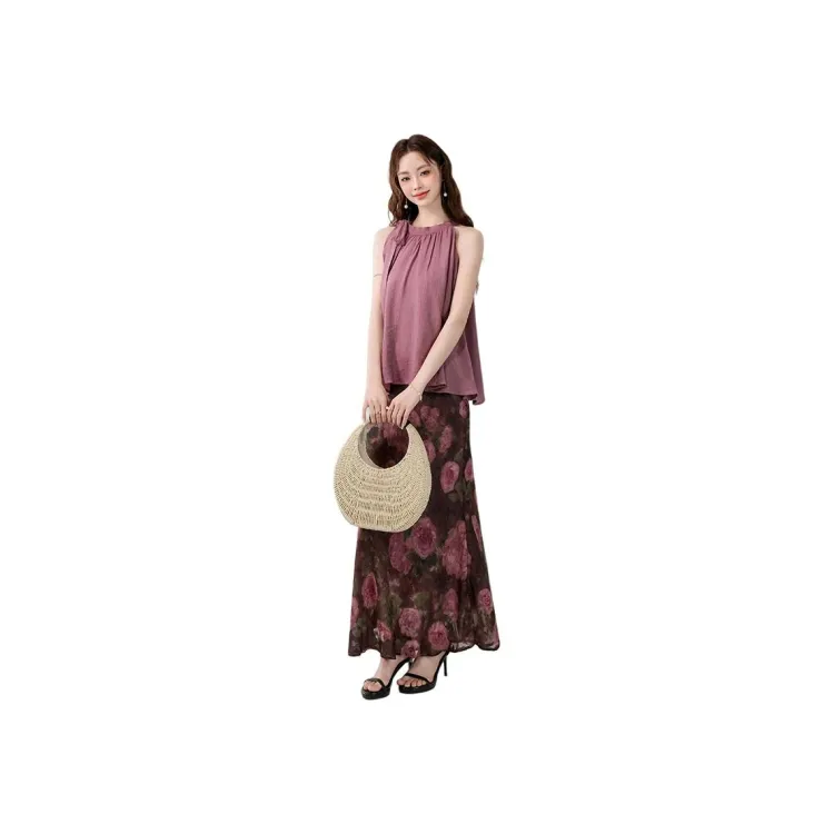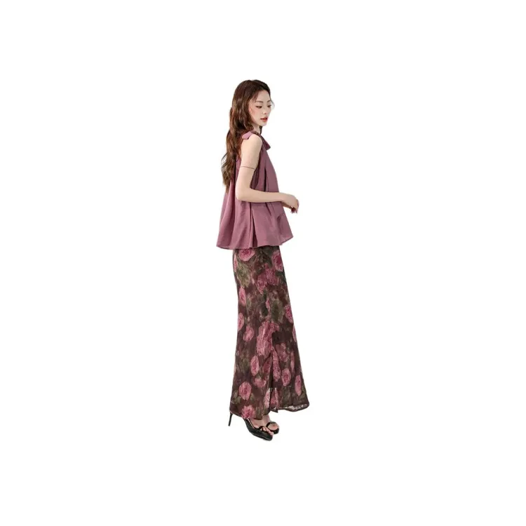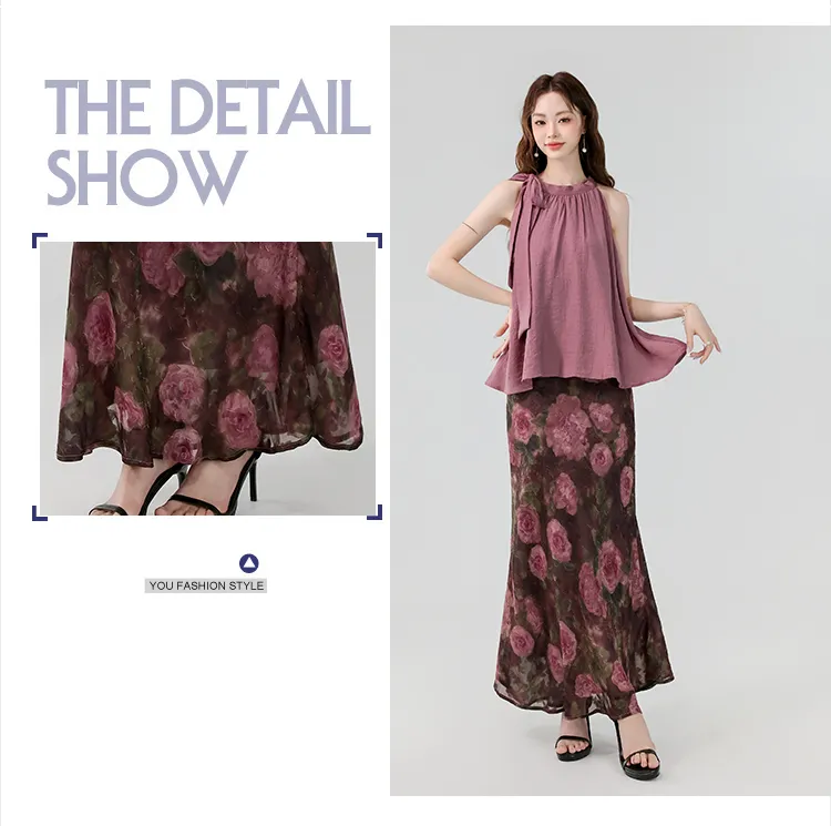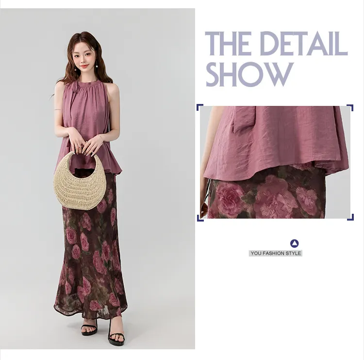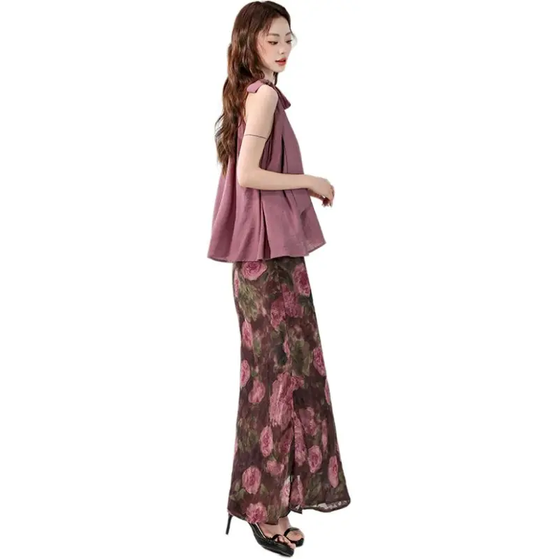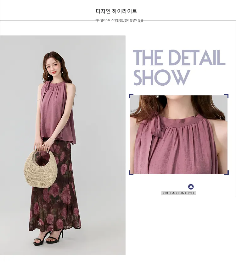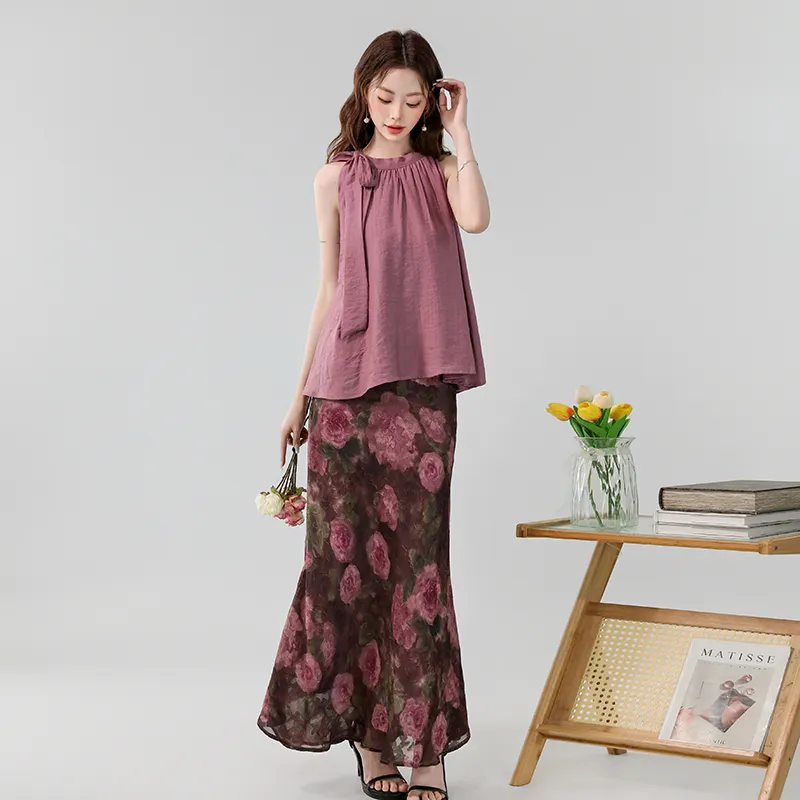 세트:2종 세트 (퍼플 상의 + 꽃무늬 스커트)
