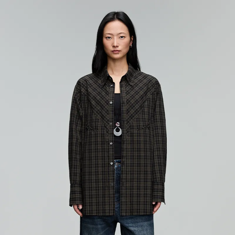 OPICLOTH 올리브 그린 남녀공용 셔츠 - POIZON