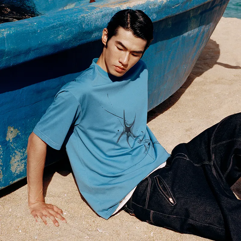 OPICLOTH 스카이 블루 남녀공용 티셔츠 - POIZON