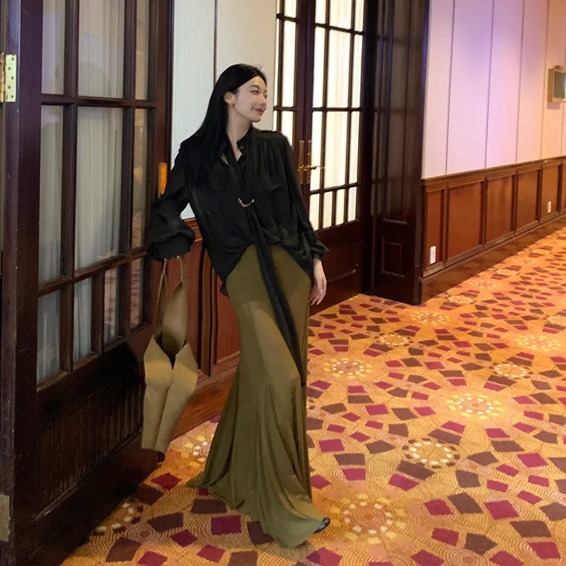 Ouyang 여성 캐주얼 롱 스커트 - POIZON