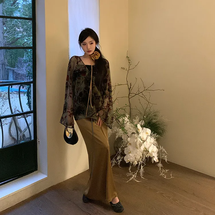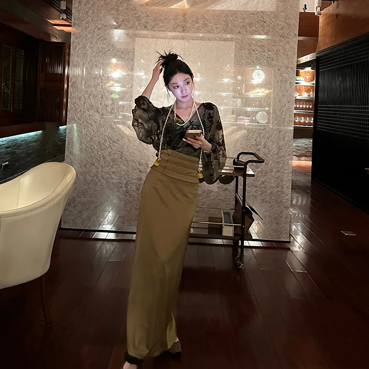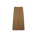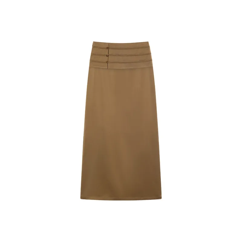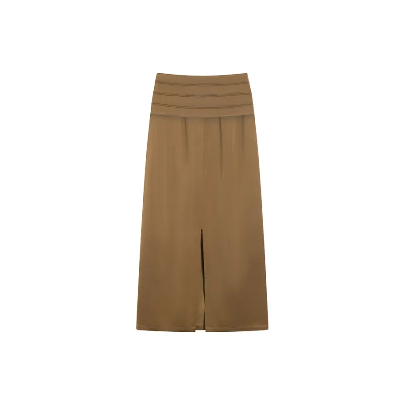 Ouyang 캐주얼 롱 기장 스커트 여성 토터스쉘 옐로우 - POIZON