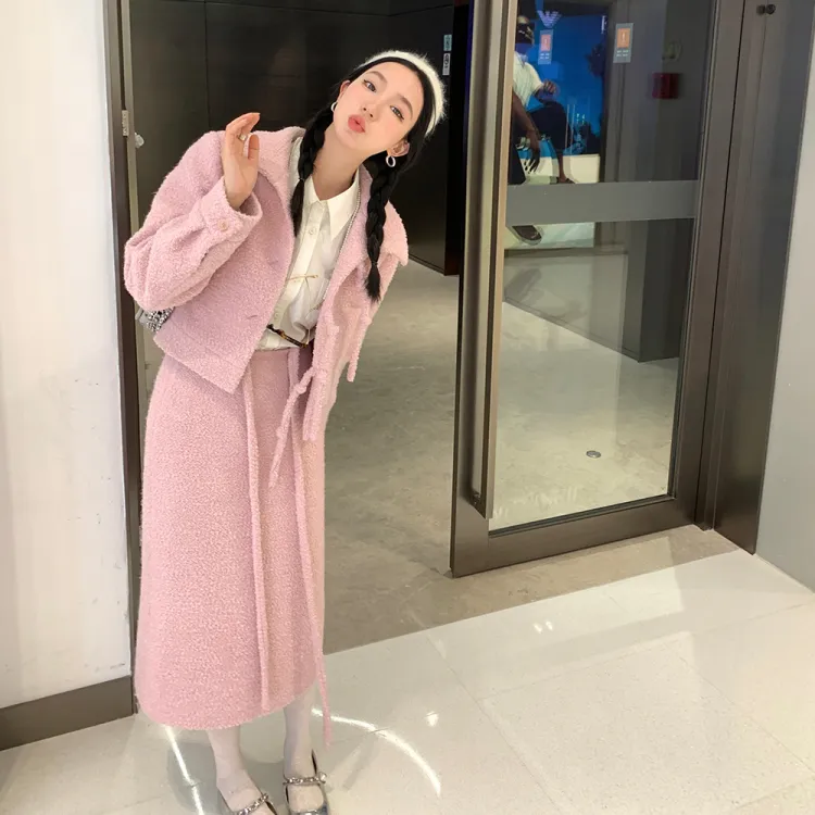 Ouyang 핑크 여성 캐주얼 롱 스커트 - POIZON