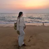 Ouyang 크림 옐로우 베이지 여성 니트웨어