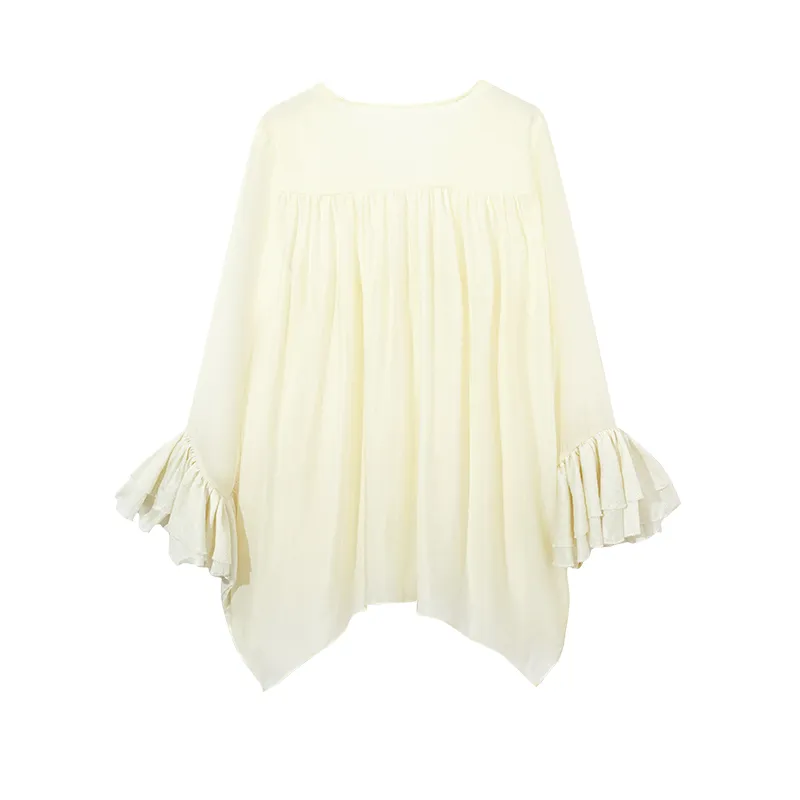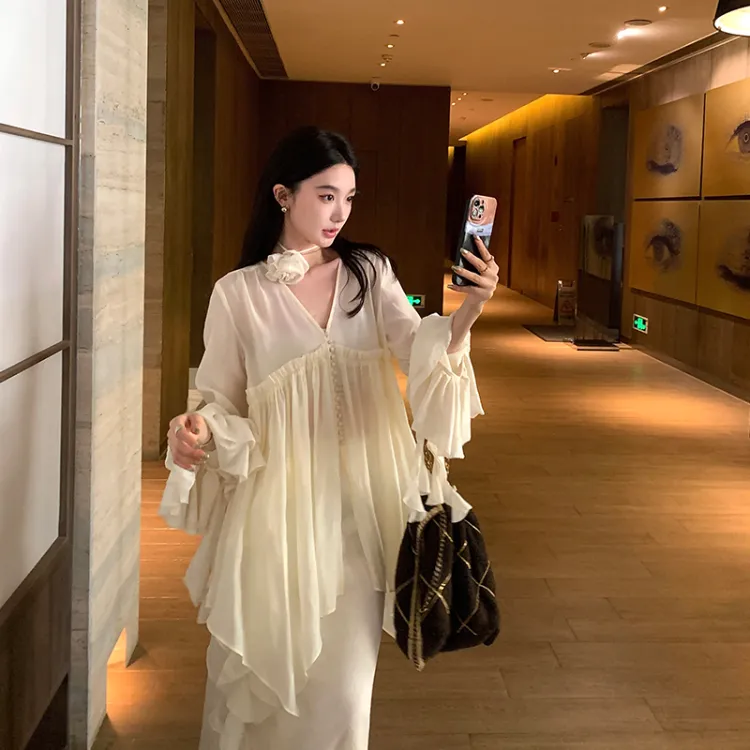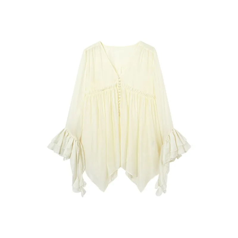 Ouyang 향기로운 애프리콧 화이트 여성 셔츠 - POIZON
