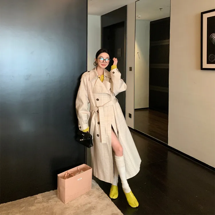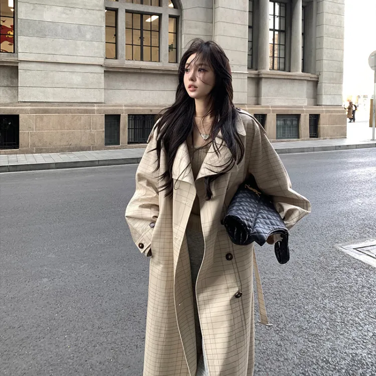 Ouyang 노트 스트라이프 패턴 여성 트렌치 코트 - POIZON