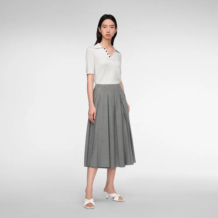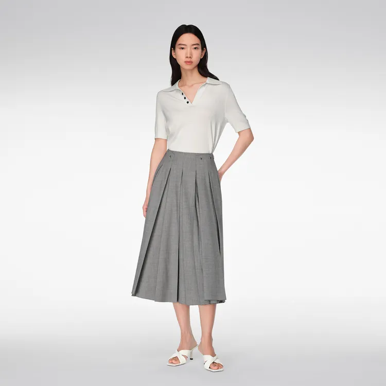 OVV 펄 그레이 여성 캐주얼 롱 스커트 - POIZON