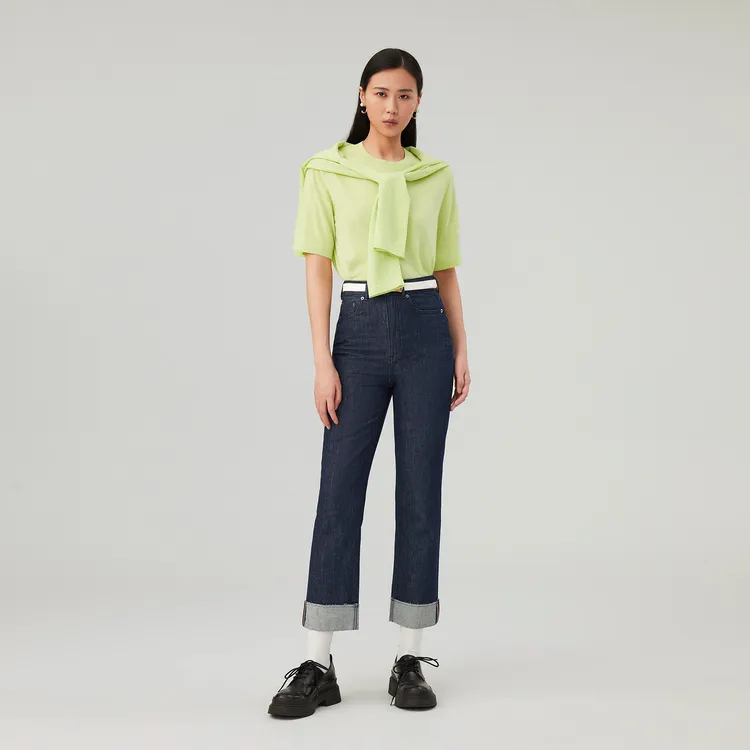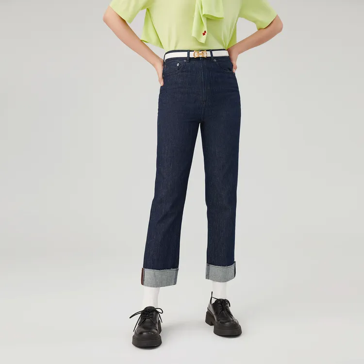 OVV 네이비 블루 단색 A1 여성 청바지 - POIZON
