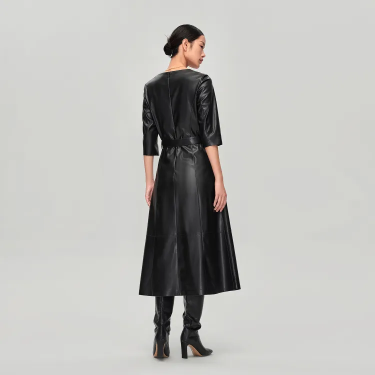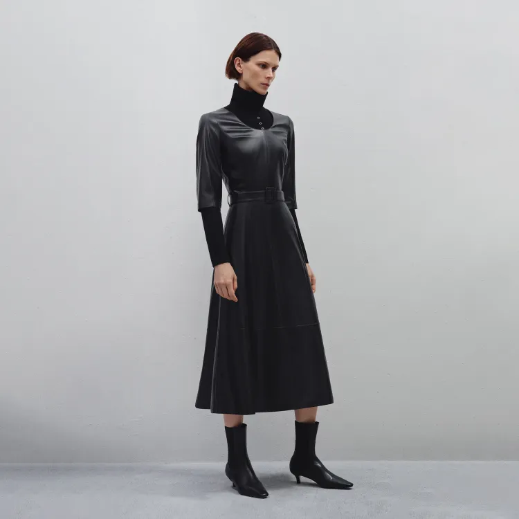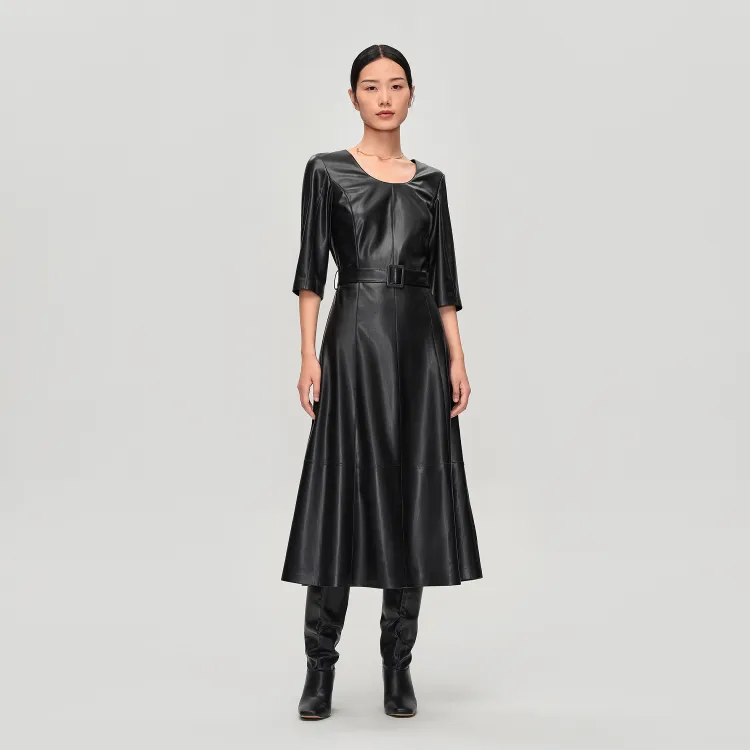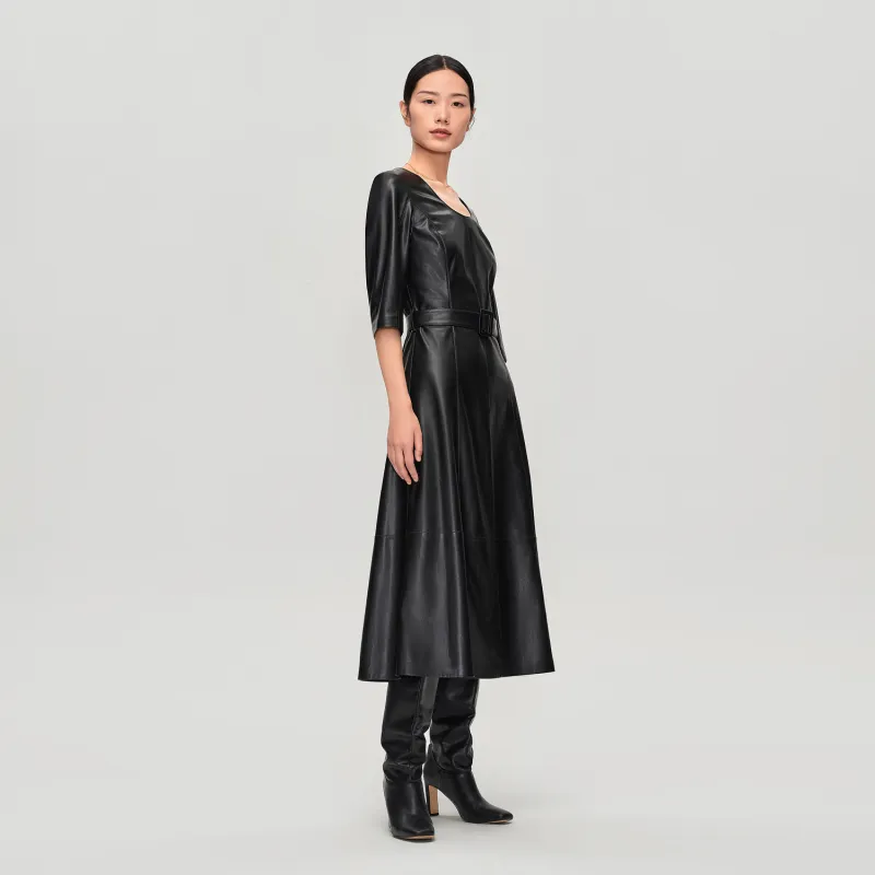 OVV 블랙 단색 A2 여성 긴팔 원피스 - POIZON