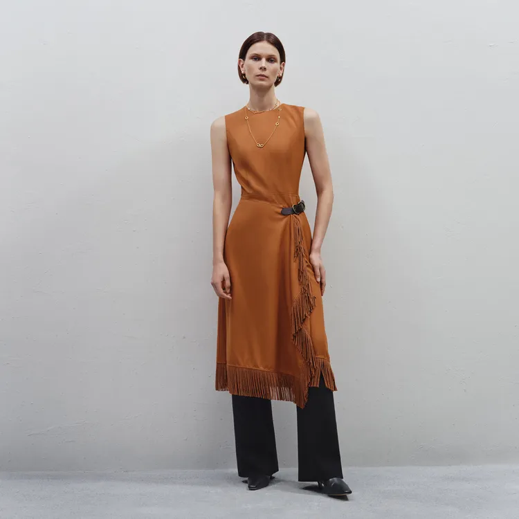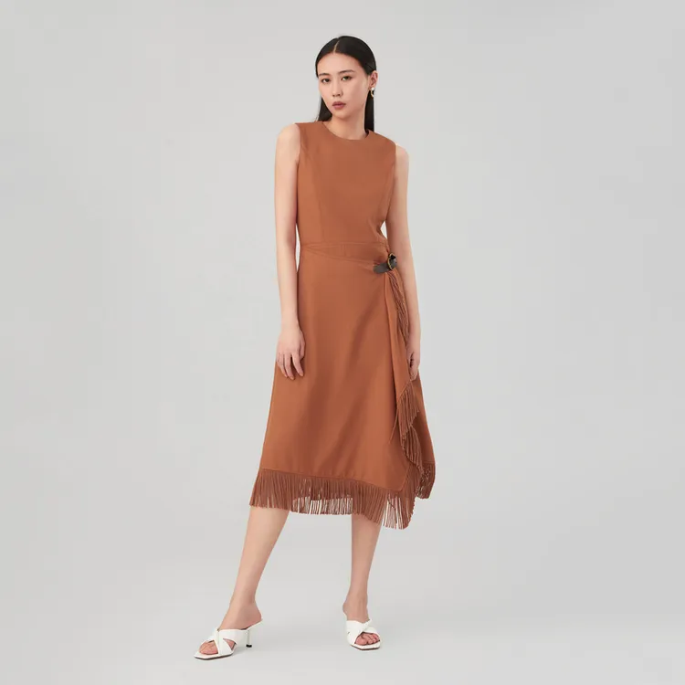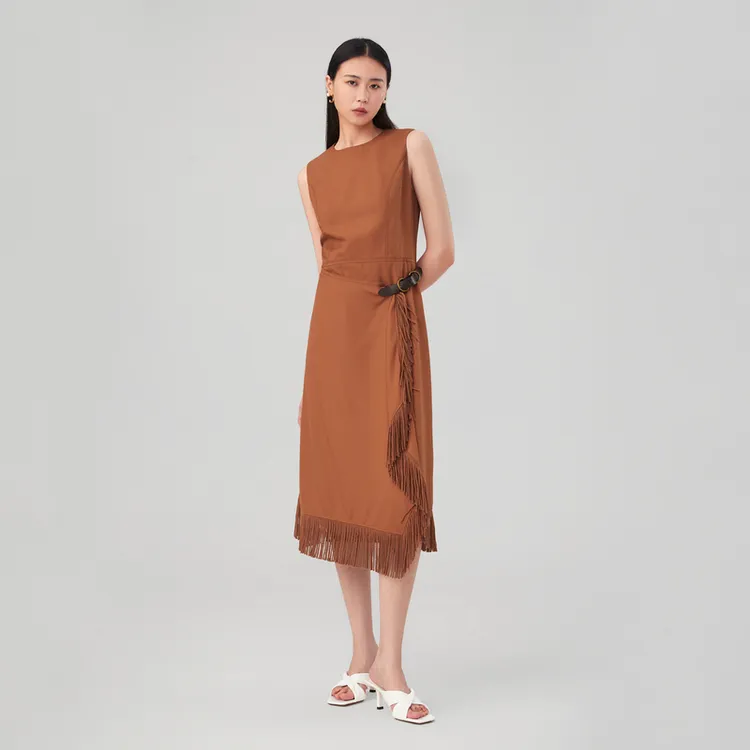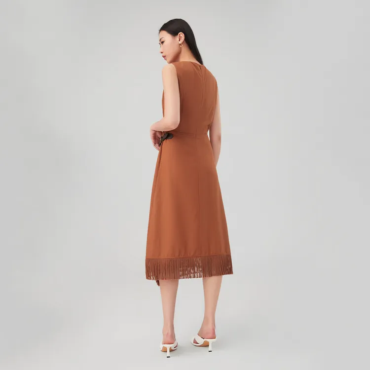 OVV 카라멜 단색 A3 여성 긴팔 원피스 - POIZON