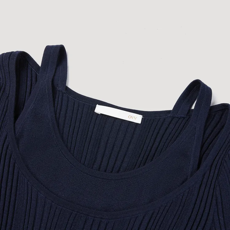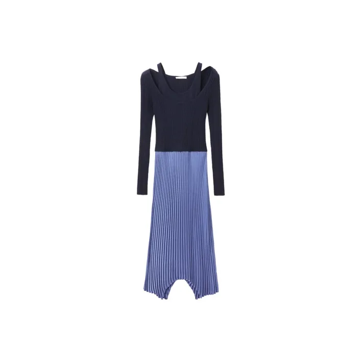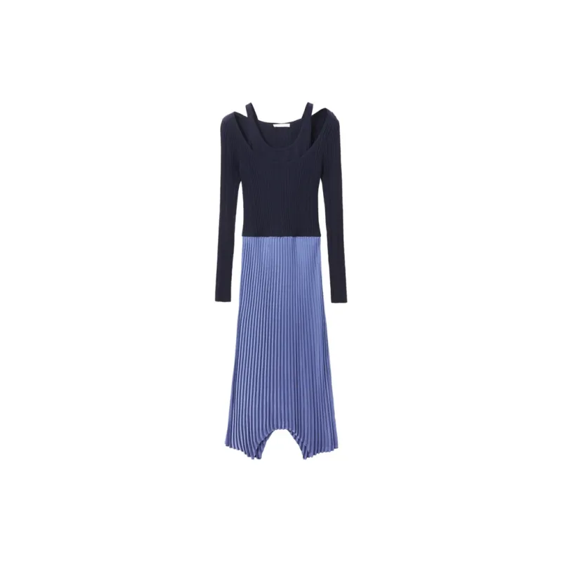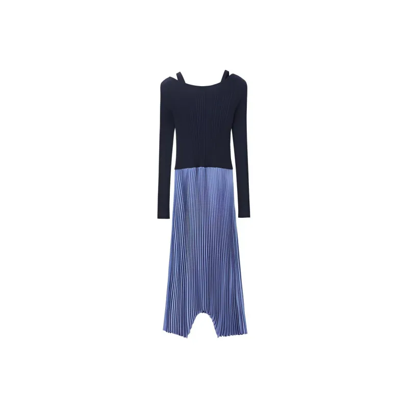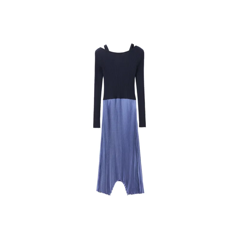 OVV 네이비 블루 & 11 스트라이프 여성 긴팔 원피스 - POIZON