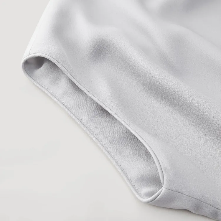 원단: 67% 아세테이트, 33% 폴리에스터 안감: 100% 뽕나무 실크