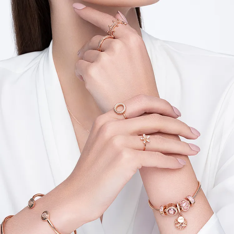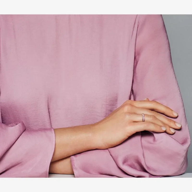 (W) 판도라 스파클링 트위스티드 라인 링 로즈 골드 플래팅 - POIZON