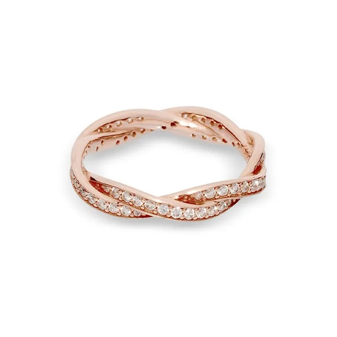 (W) 판도라 스파클링 트위스티드 라인 링 로즈 골드 플래팅
