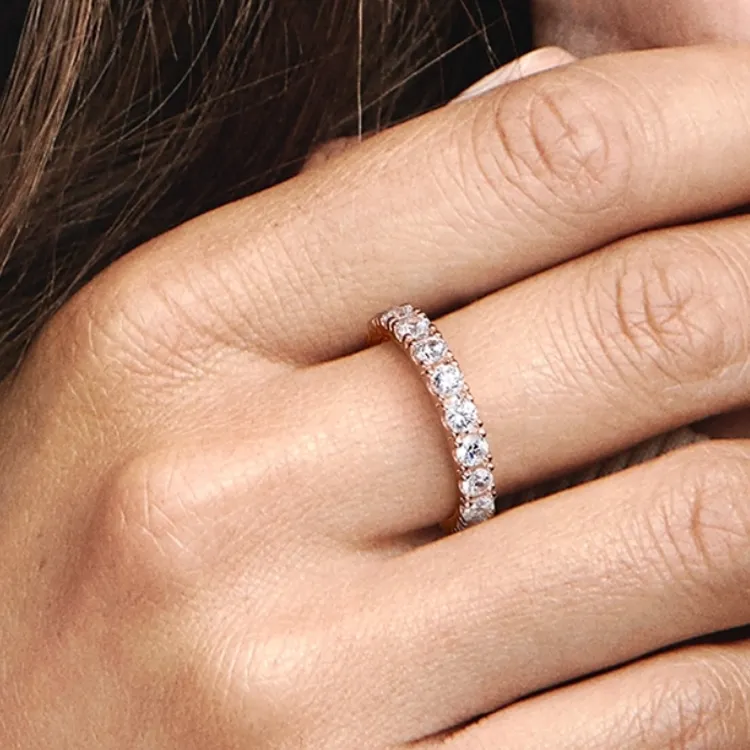 (W) 판도라 스파클링 로우 이터니티 링 로즈 골드 플래팅 - POIZON