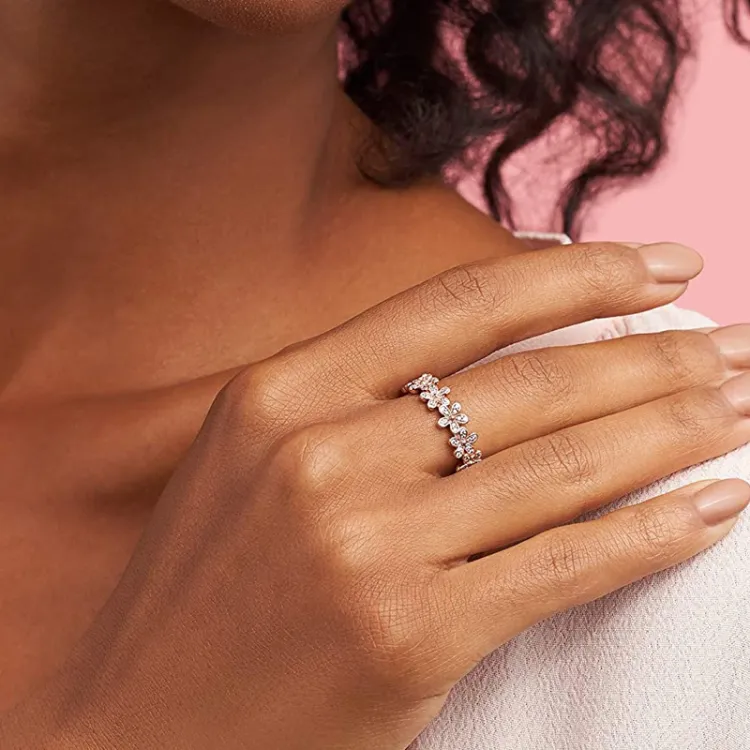 (W) 판도라 데이지 플라워 링 로즈 골드 플래팅 클리어 - POIZON