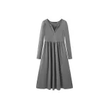 PEACEBIRD 그레이 여성 긴팔 원피스 - POIZON
