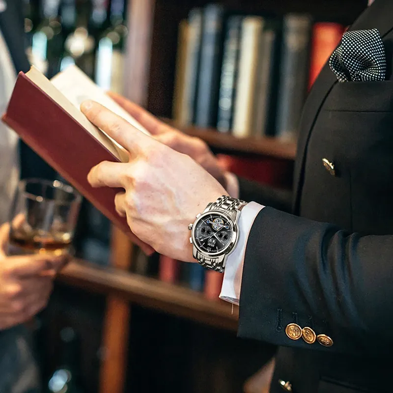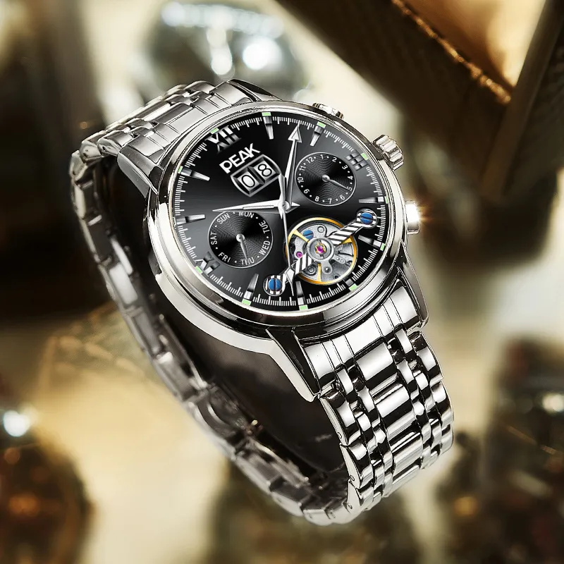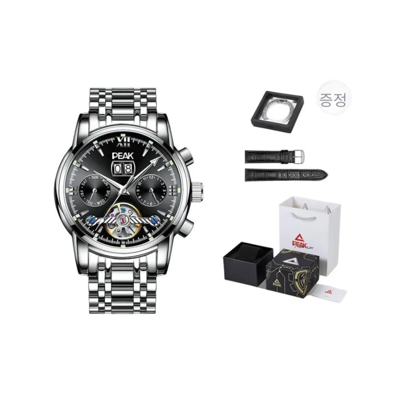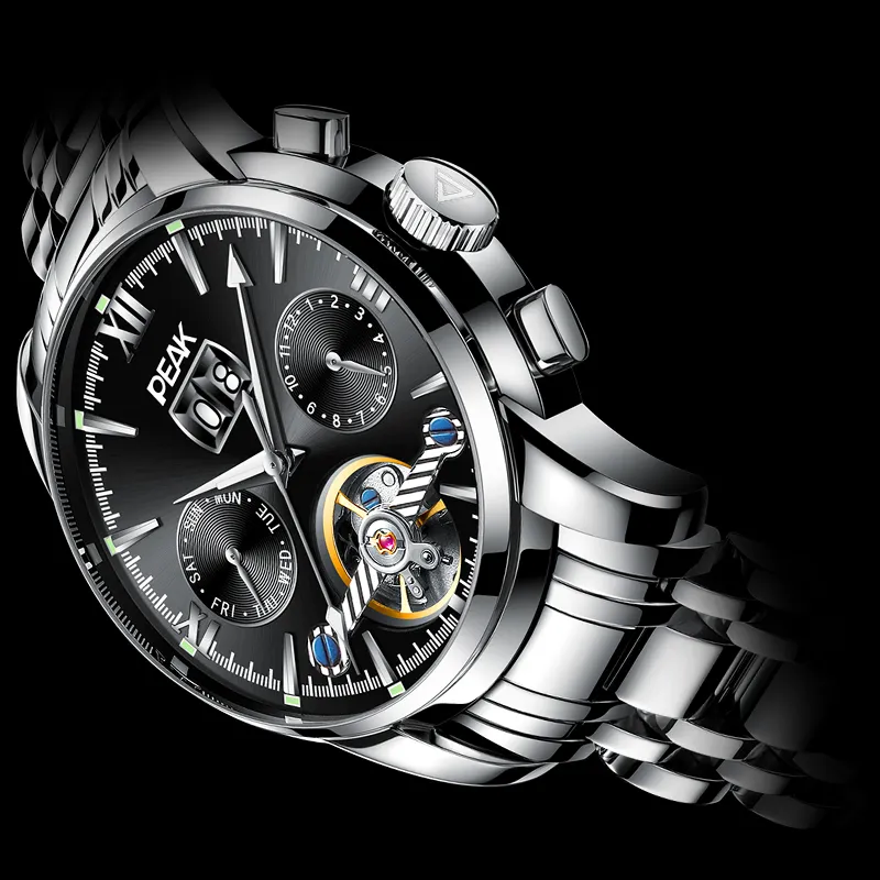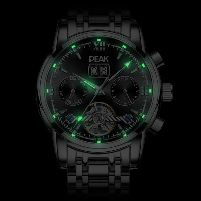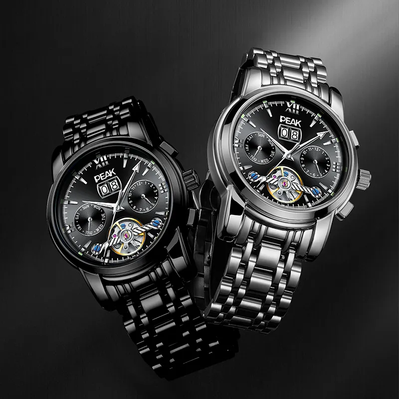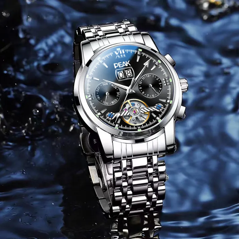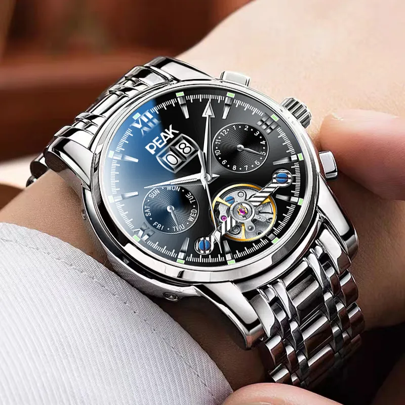 PEAK 어드벤처 컬렉션 오토매틱 메커니컬 무브먼트 스테인리스 스틸 시계 밴드 중국 시계 남성용 시계 블랙 다이얼