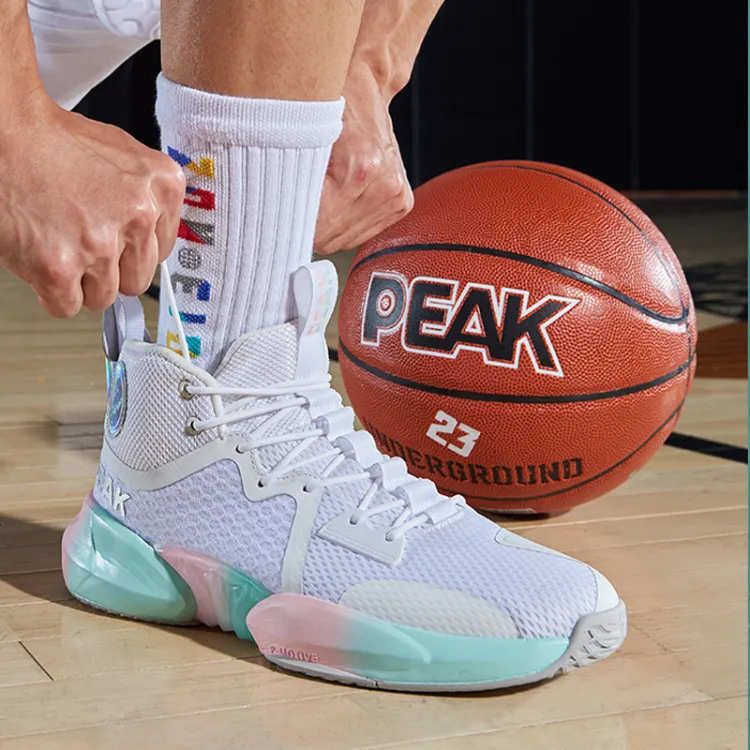 PEAK 쿠셔닝, 미끄럼 방지, 내마모성, 통기성이 좋은, 키높이 미드탑 농구화 남성 베이맥스