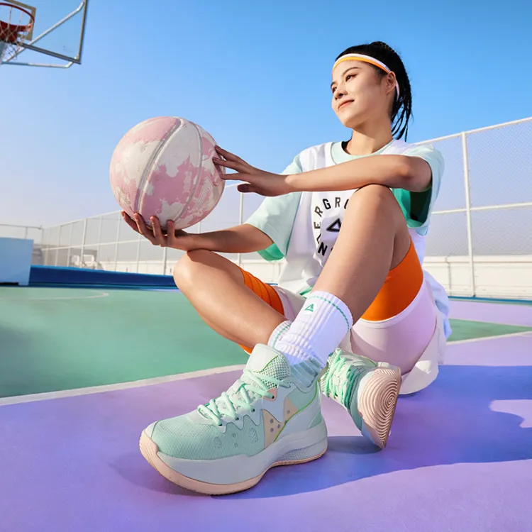 PEAK 라니잉 쿠션감, 내마모성, 가벼움, 미끄럼 방지 로우탑 농구화 여성 구아슈 그린